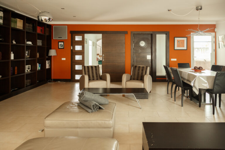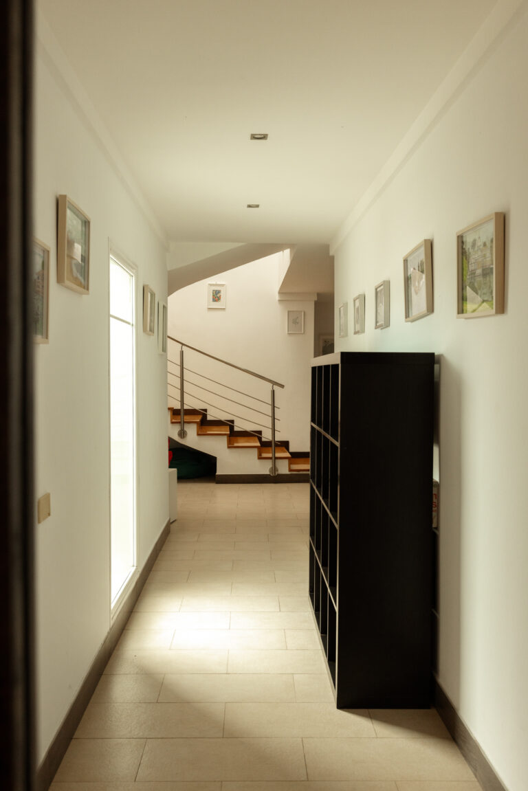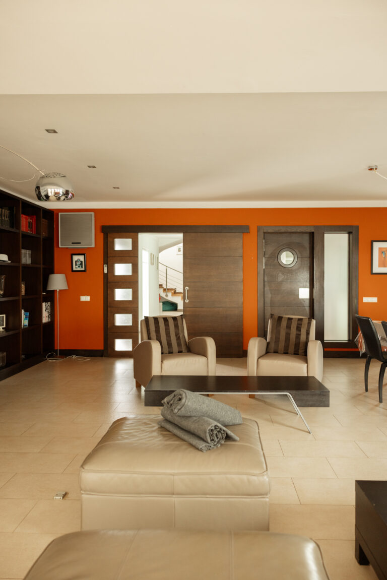A spacious indoor area that can be easily converted into an indoor studio by moving sofas and tables towards the walls, suitable for workshops, talks or indoor practice sessions.