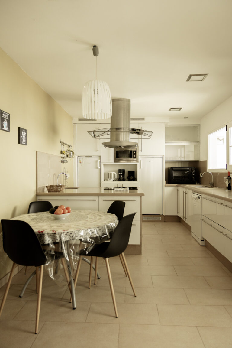 Five double bedrooms, three full bathrooms, a fully equipped kitchen and a very spacious living room.